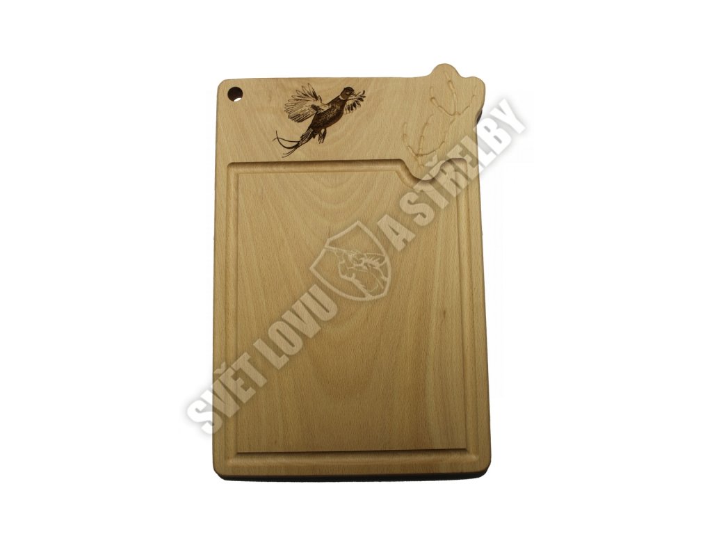 Stylové dřevěné prkénko s vyobrazením bažanta a odpovídající stopou v pravém horním rohu je skvělým dárkem do myslivecké kuchyně.