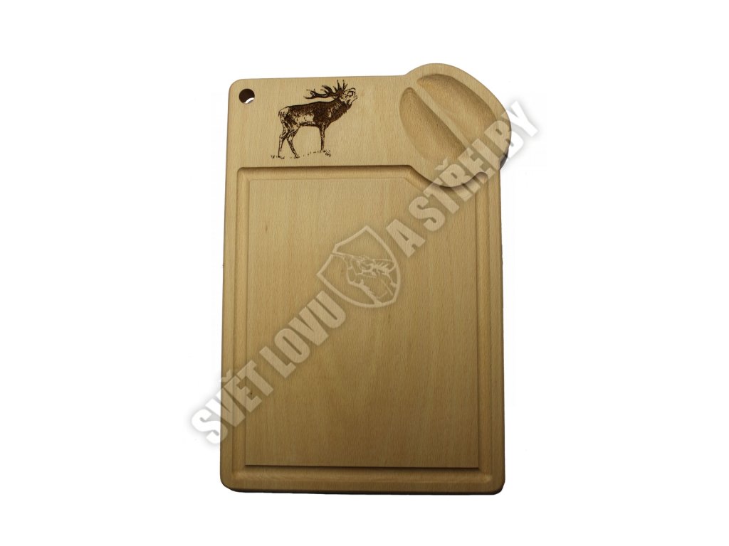 Stylové dřevěné prkénko s vyobrazením jelen a odpovídající stopou v pravém horním rohu je skvělým dárkem do myslivecké kuchyně.