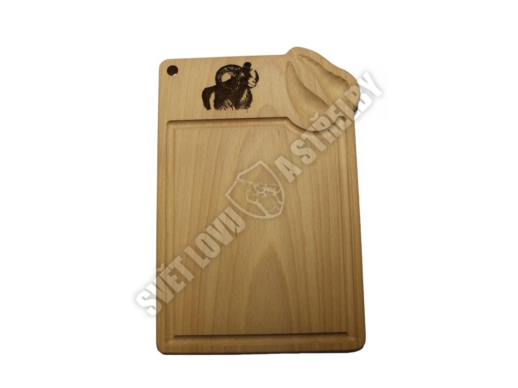 Stylové dřevěné prkénko s vyobrazením muflon a odpovídající stopou v pravém horním rohu je skvělým dárkem do myslivecké kuchyně.