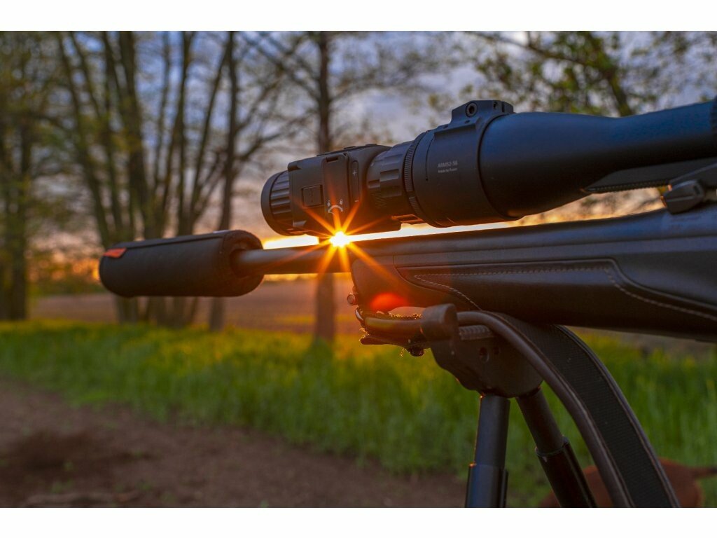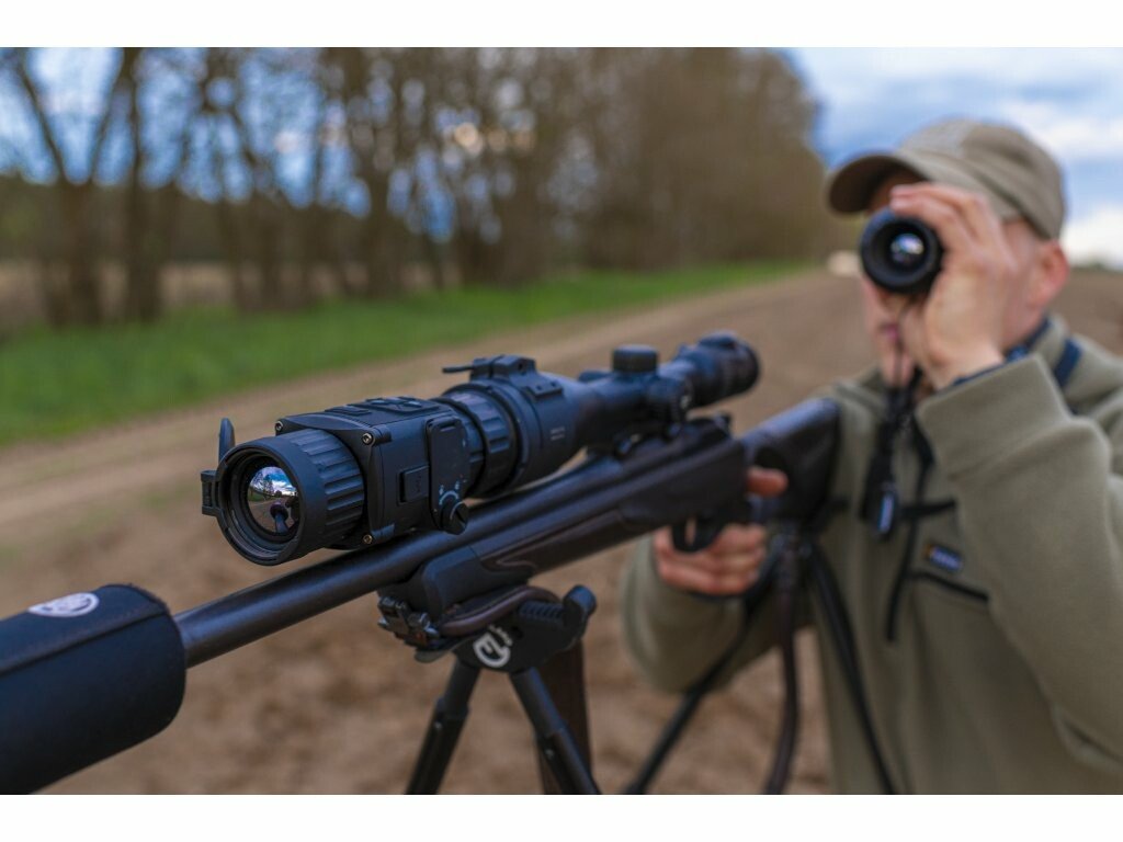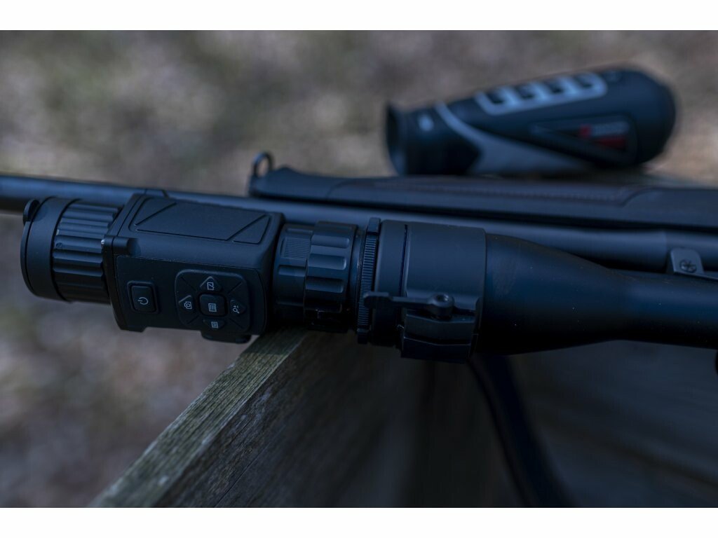 Termovizní předsádka Hikmicro Thunder TH35PC je novinka na trhu od výrobce Hikmicro. Thunder TH35PC je vybaven nejnovějšími metodami zpracování obrazu. Technologie AGC (Auto Gain Control) - automatické řízení citlivosti, automaticky upravuje dynamický rozsah obrazu. Další technologií je DDE (Digital Detail Enhancement), která využívá pokročilé algoritmy, pomoci kterých skvěle vykresluje detaily ostřeji i tehdy, když se nacházejí v oblastech s nízkým kontrastem (teplá / studená). V neposlední řadě v sobě ukrývá technologii 3D DNR (3D digitální redukce ruchu v obraze), která velmi účinně odstraňuje zrnité nebo rozmazané části pozorované scény. Výsledný obraz je tak mnohem čistší než u přístrojů používajících tradiční dvourozměrnou redukci šumu (2D DNR). Jádro o vysokém rozlišení 384x288px 12µm, VOx zajišťuje, že obraz je po přiblížení stále ostrý (nekostičkuje). OLED displej s rozlišením 1024 × 768px, kvalitní 35mm čočka a poměrový dálkoměrem. Tyto parametry zajišťují jasný obraz v drsných podmínkách prostředí jako je tma, mlha, kouř, prach, déšť, sníh, lesní porost atd. Díky svým kompaktním rozměrům a lehké váze (pouze 420 g) bude Thunder TH35PC Vašim ideálním pomocníkem při lovech. Výhoda termovizních předsádek je, že přístroj můžete využívat jako pozorovací zařízení a jednoduchým připevněním na puškohled se z pozorovacího zařízení stane v mžiku zažízení zaměřovací.