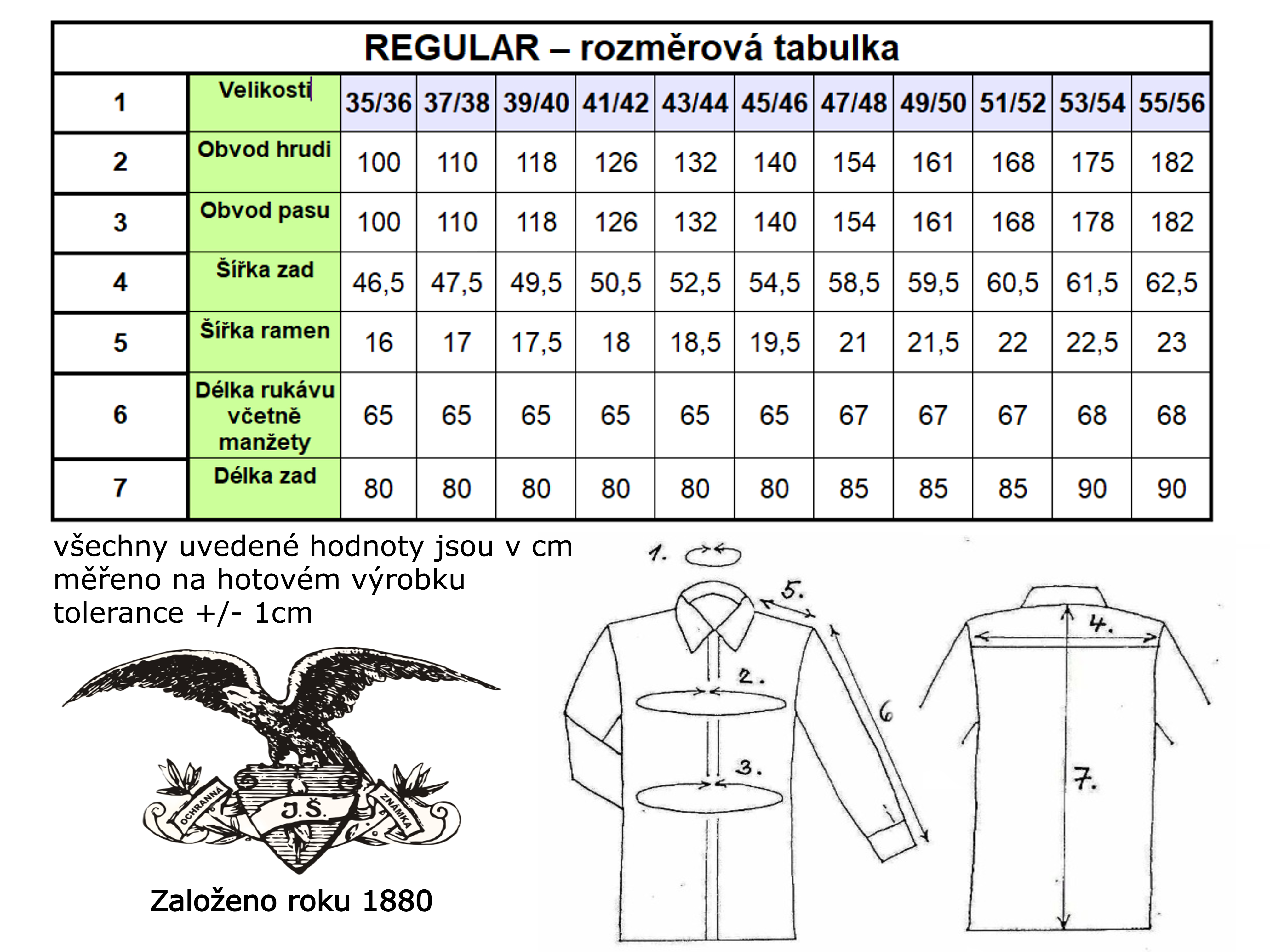 Velikosti: 38 - 46 (S - XXL); 47 - 56 (3XL - 7XL).