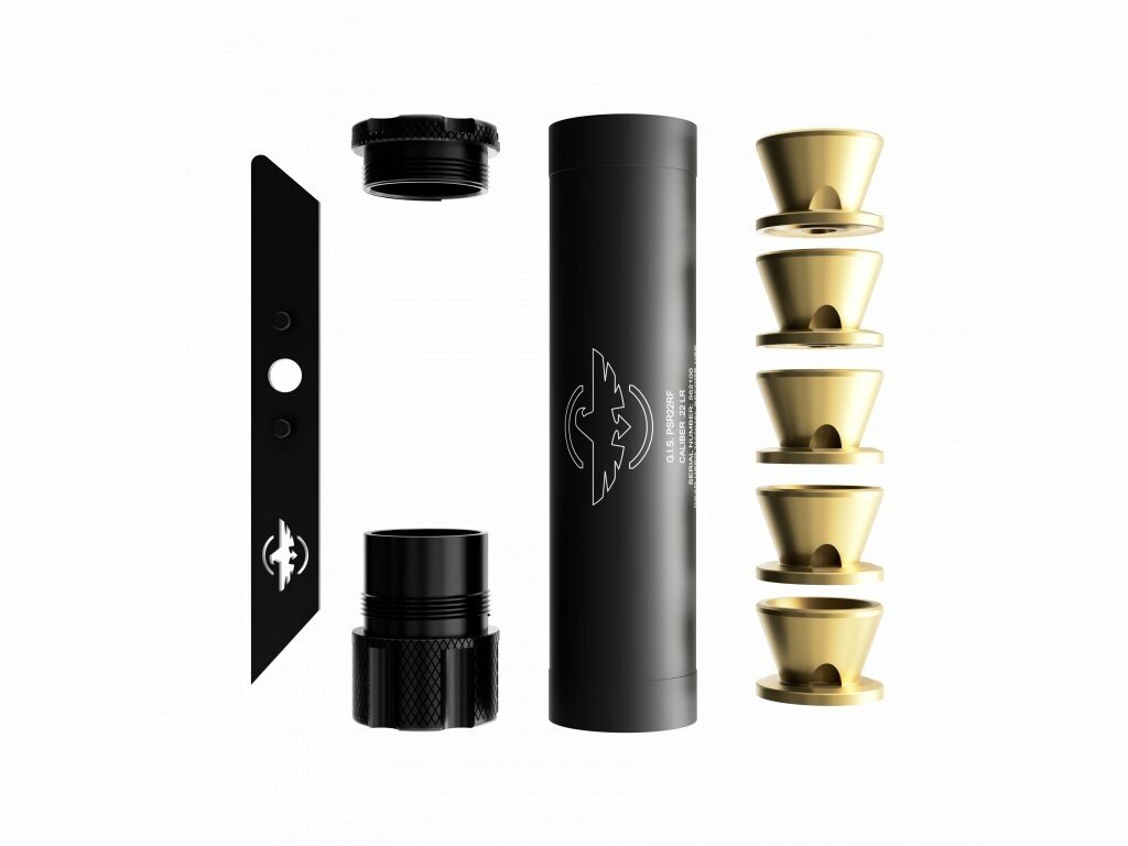 Tlumič hluku GIS RSR22RF je zkonstruován pro ráže .22 short, .22 Long Rifle, 22WMR a 22 Hornet.